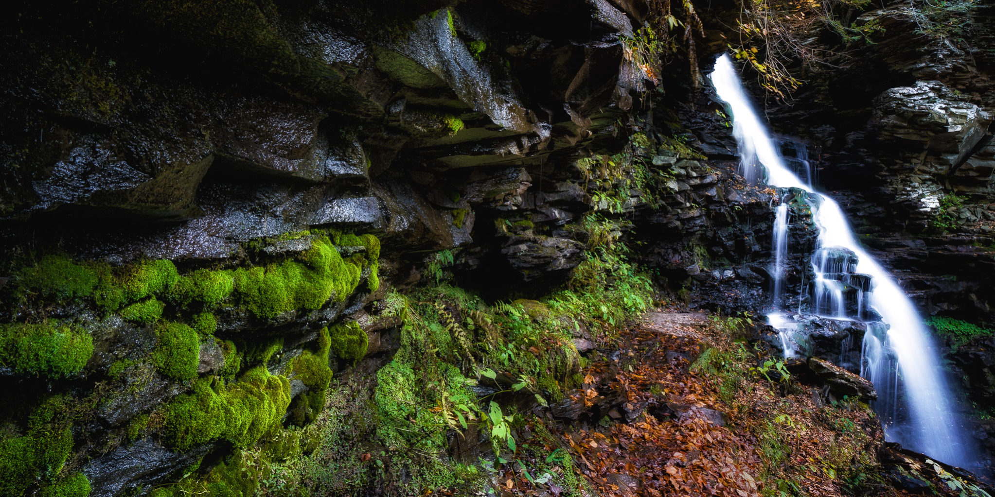 This past Monday, October 14th, I took a day off from work and made a trip up to Red Rock, PA and hiked through Ricketts Glen State Park. I haven’t been to the park since my childhood years when my family would take our pop-up camper to various locations throughout the Northeastern United States. I vaguely remember the trip but the waterfalls are something that are very hard to forget. There are 22 named waterfalls and many more smaller ones that can be seen among the trails. I arrived at the evergreen parking lot off of route 118 just before sunrise to try to capture the falls during the best possible light. I started my hike first up hill following the glen leigh trail and then the highland trail until it brought me to the ganuga glen trail which took me back down hill toward the area in which I parked. I was hoping to see the Autumn colors in their peak conditions. There was plenty of yellow and patches of red along with some green leaves which did not start to change yet. The water level was not as high as it can be but for the fall season in which I visited there was pretty good flow of the water. Just like with any hiking trail with water near by you have to be careful of slippery rocks so I made sure to watch my step along the way. I did get my shoes wet a few times but only because I had to get in position for a better composition. I highly recommend the park to anybody looking to experience mother nature at her finest!