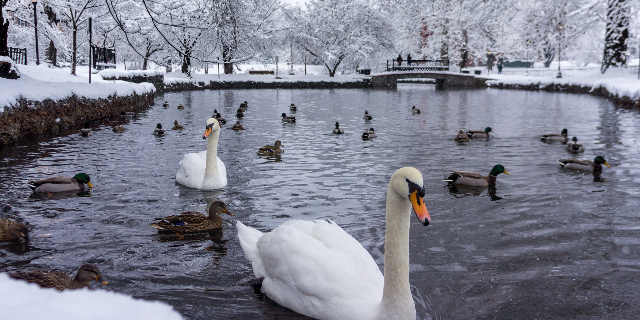 The other day we had a heavy dose of early December snow here in Lancaster, PA. I took a stroll through the campus of Millersville University to capture some scenes of the winter wonderland that the students were enduring throughout their final exam week. One spot I made sure to visit was the swan pond. Since the mid 1960s the swans have been a trademark of the University. The tradition has continued through the decades with the newest set introduced to the campus in 2007. Miller and S’ville stick it out throughout the winter months but unfortunately did not want to leave a spot located under the one foot bridge. I had to make a quick stop at a campus convenience store to grab a bag of popcorn which lured them out in no time at all! I really think the white swans in the water made a great subject with the rest of the surrounding area covered in snow. The pond in which the swans are pictured was not frozen however the other half of the pond was frozen and a photo of that scene is also below. I also walked over to the Biemesderfer Center which is the office for the current Millersville University president, Dr. John M. Anderson. After hitting the two spots that I originally planned to visit I strolled around some other areas of campus to see what else looked interesting. I hope you enjoy them! Just a reminder the above photo and the rest of the ones below are available for sale on my photos page in the Millersville University gallery. Thanks for stopping by!