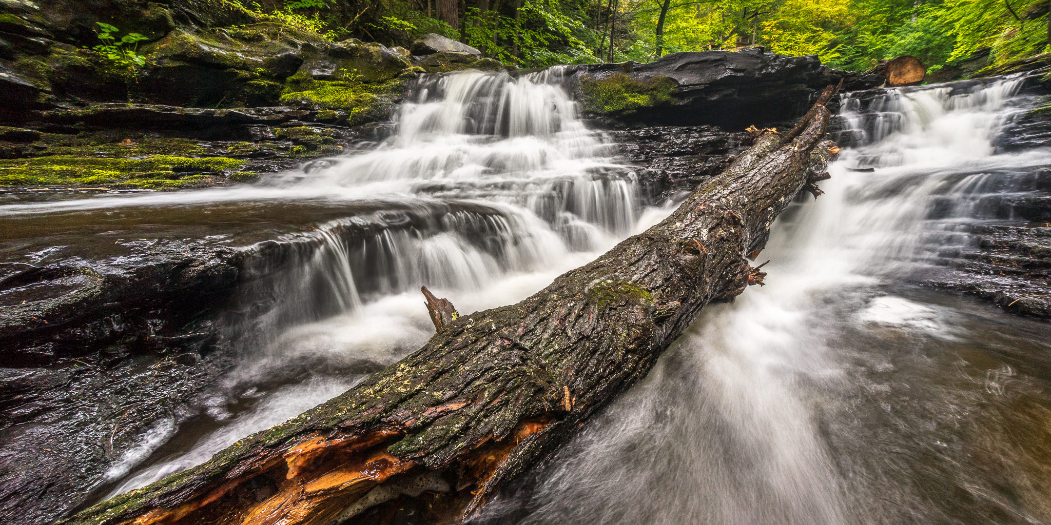 While making my way toward Deer Leap Falls I came across a small cascade in which a tree had fallen. The tree looked as if it recently reached it’s demise because of how fresh the inside of the log looked at the bottom portion of the image. I originally processed a HDR image and then masked in the water from that onto a separate single exposure of the rest of the scene. I presented this image at my local photography group and people liked the wide angle used because it gave a vertigo feeling as if you are almost within the water. This may be my favorite shot I took away from this trip. See below: