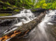 This past Sunday I drove down to Holtwood, PA and visited Tucquan Glen. Tucquan Glen is one of near 30 preserves maintained by the Lancaster County Conservancy. There are three main trails, each slightly more than a mile long, that follow the Tucquan Creek from River Road to the Susquehanna River. The area is beautiful and during it’s busy season it is estimated that forty visitors venture it each day. There are plenty of small waterfalls throughout the creek and is mostly covered by large trees to create nice cool shaded areas. You can also find wildlife in Tucquan Glen. It is reported that coyotes, foxes, deer and copperhead snakes are some of the larger creatures that can be spotted in addition to smaller wild species as well. I did not see any animals during my trip but that may be due to the fact that I was mainly focused on the waterfalls. I made this venture on my own, but it is recommended to take a hiking buddy along. At points the trails are very narrow including rocky terrain and mossy tree trucks. A wrong step could easily put you on your rear end or even worse into the creek. My mission was to get some killer shots of the waterfalls with the changing leaves to add a nice element the photos.